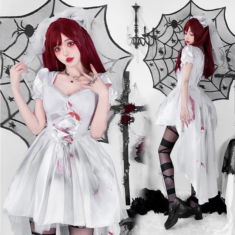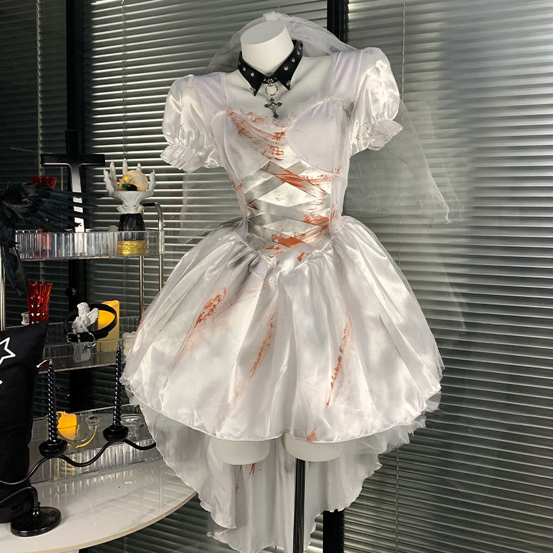 Cosplay Bride Gothic Blood Print Dress