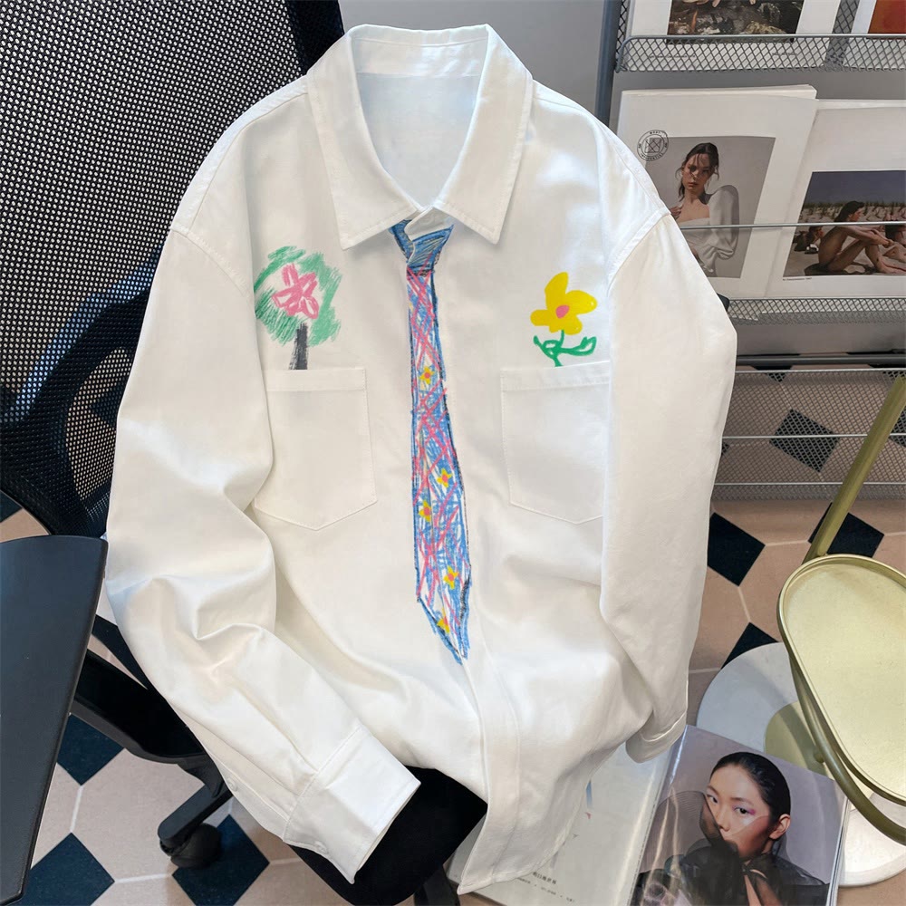 Doodle Drawing Tie Flower Tree Casual Shirt