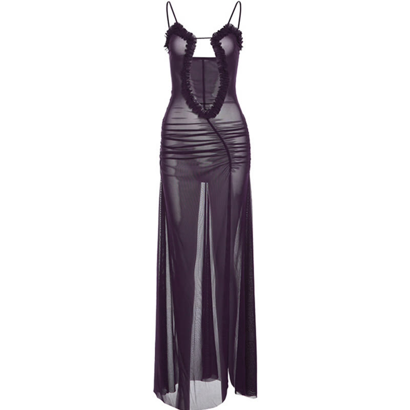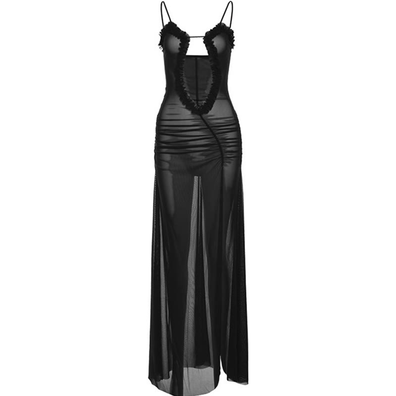 Mesh Hollow Out Slit Slip Dress