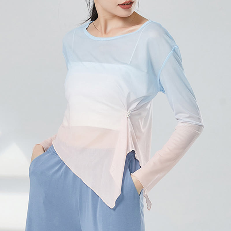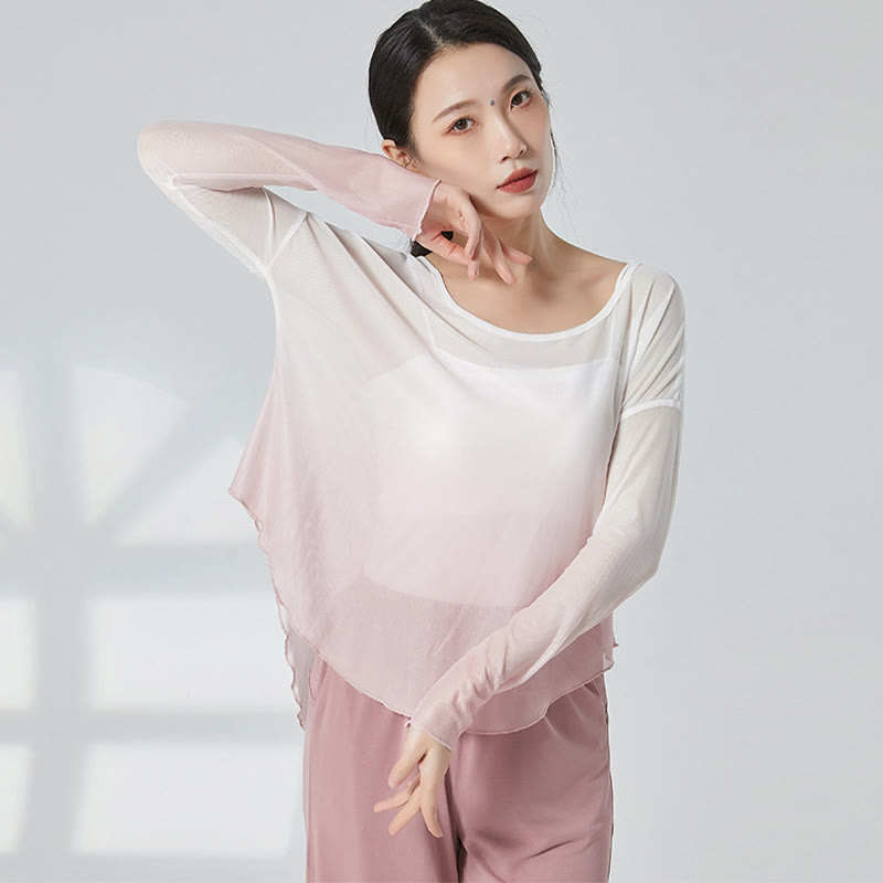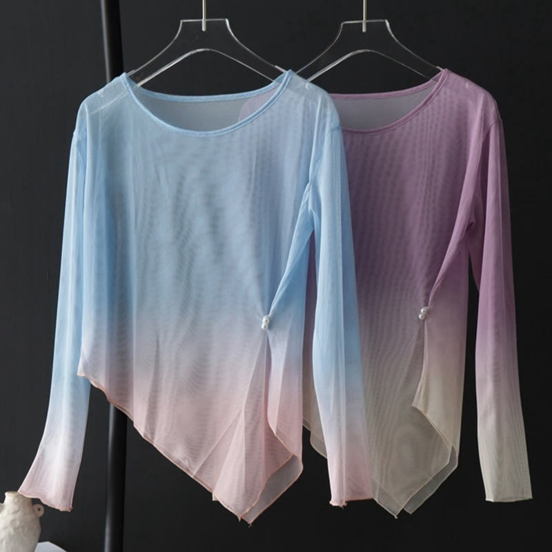 Irregular Gradient Mesh Long Sleeve Top