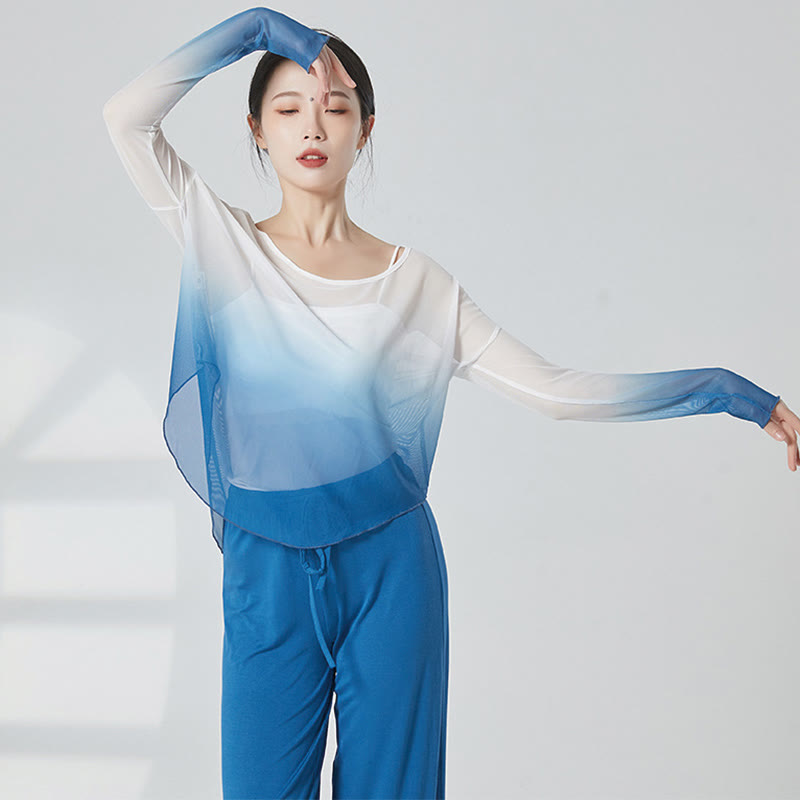 Mesh Gradient Long Sleeve Top Casual Pants