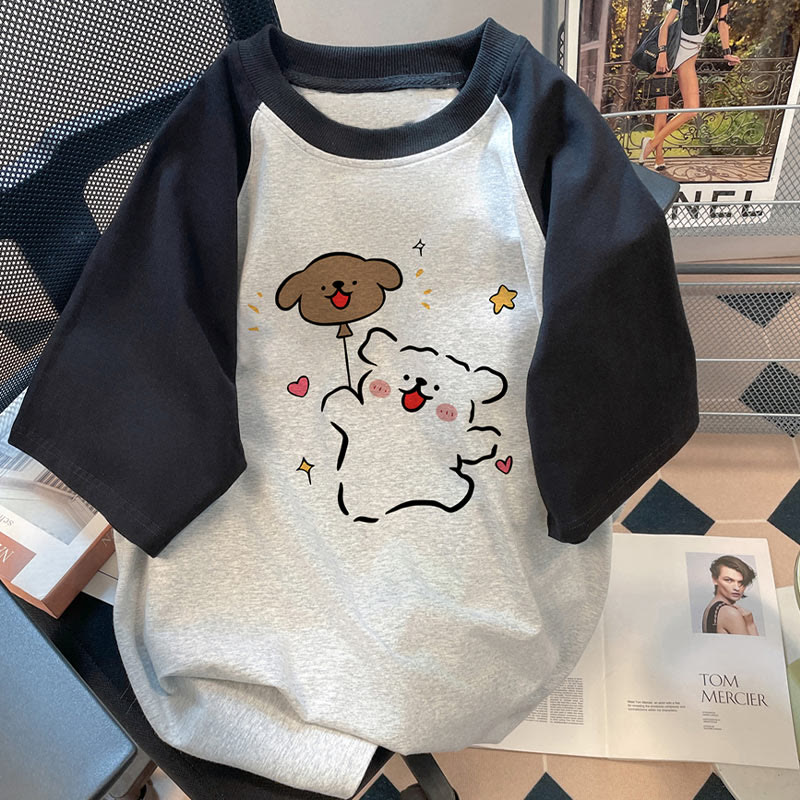 Modakawa Puppy Print Casual T-Shirt