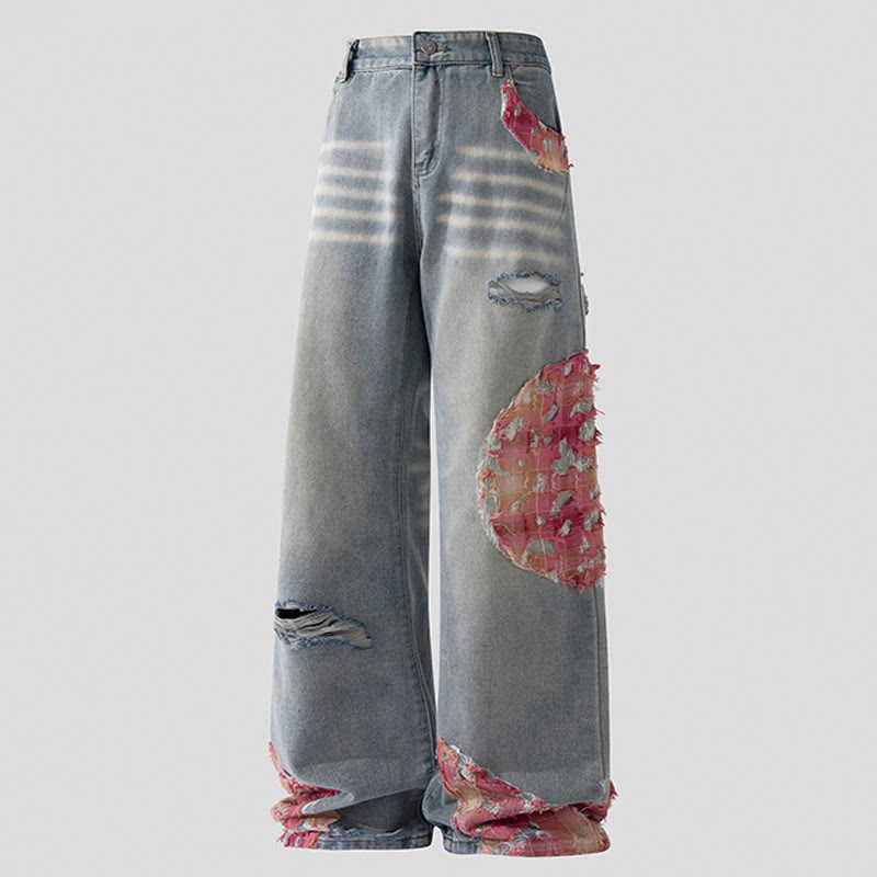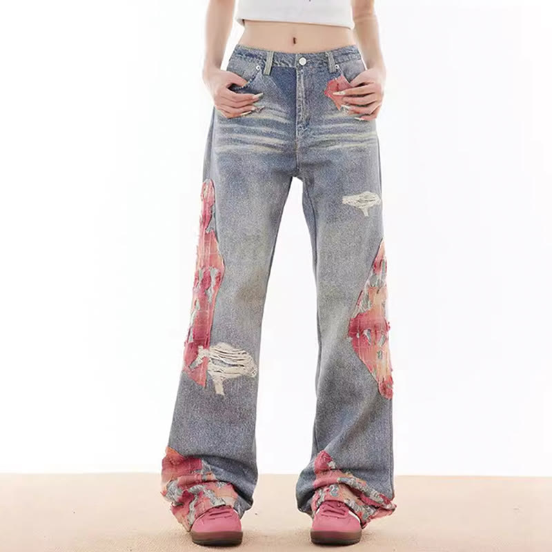 Vintage Ripped Lace Casual Denim Pants