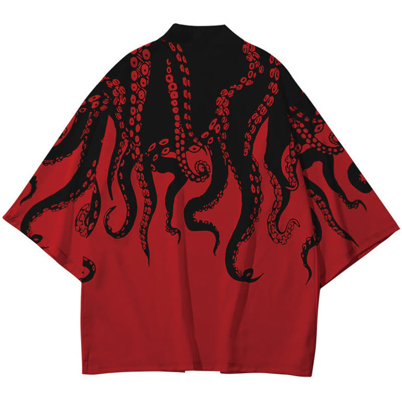 Vintage Octopus Print Casual Cardigan Kimono Outerwear