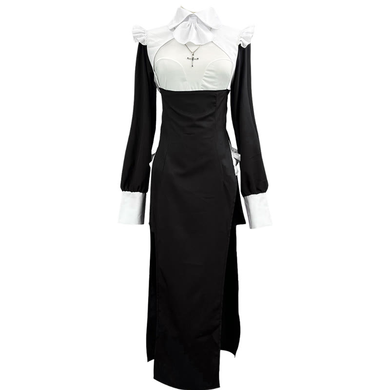 Cosplay Nun Cross Slit Dress