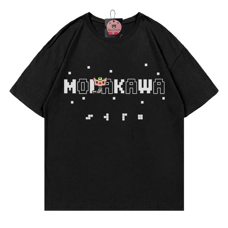 Mosaic Pig Letter Print 100% Cotton Modakawa T-shirt
