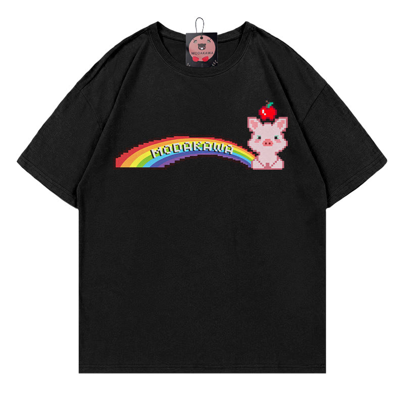 Rainbow Pig Letter Print 100% Cotton Modakawa T-shirt