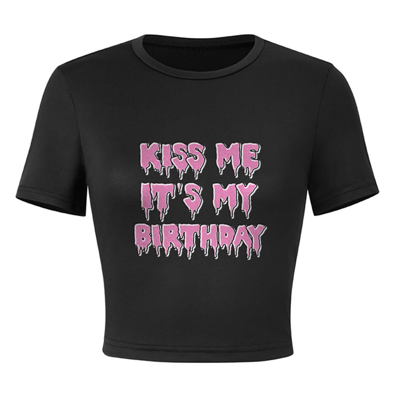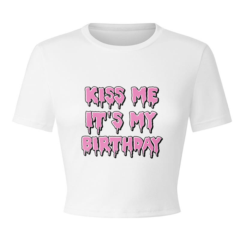 KISS ME IT'S MY BIRTHDAY Print Modakawa Crop Top