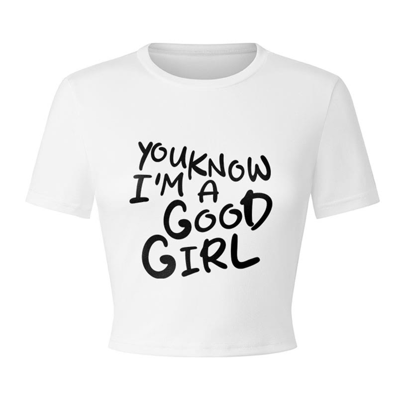 YOU KNOW IM A GOOD GIRL Print Modakawa Crop Top